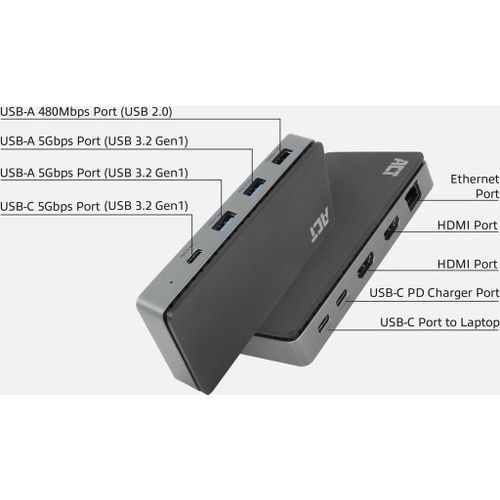 Met het ACT AC7093 USB-C dockingstation transformeer je je Windows-laptop in een compleet werkstation. Dankzij de afneembare USB-C-kabel van 1 meter sluit je eenvoudig tot twee 4K-monitoren aan via de HDMI-poorten met MST-ondersteuning. Werk productiever met directe toegang tot snel internet via de...