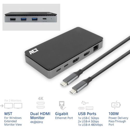 ACT Ac7093 Usb-c 4k Mst Naar Hdmi Dockingstation