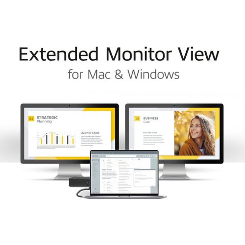 - Breid de werkruimte van je Windows of MacOS computer uit met twee extra 4K-schermen of één 5K scherm door gebruik te maken van de DisplayLink-technologie