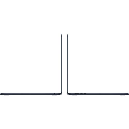 Het 15-inch Retina-display levert een indrukwekkende kijkervaring met levendige kleuren en haarscherpe details, perfect voor het bewerken van foto’s, video's of gewoon om films te kijken. Ondanks het grotere scherm blijft de MacBook Air licht en draagbaar, met een stijlvolle en moderne uitstraling in de Middernacht-kleur.
