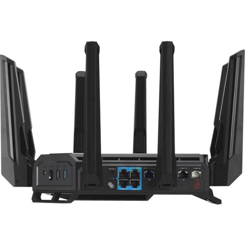 De ASUS ROG Rapture GT-BE19000 uit de ROG Rapture-serie zet een nieuwe standaard voor gaming en netwerken. Deze tri-band 12-stream WiFi 7 router is ontworpen voor de ultieme next-gen gaming ervaring, met ongekende snelheden tot 1,9 Gbps en een bekabelde netwerkcapaciteit van maar liefst 31 Gbps. Dankzij WiFi 7-technologie (IEEE 802.11be) profiteer je van 320MHz bandbreedte, 4K-QAM en revolutionaire functies zoals Multi-Link Operation voor nog hogere snelheden en extreem lage latentie. De ASUS GT-BE19000 is voorzien van twee 10G-poorten en vier 2.5G-poorten die samen tot 31G WAN- en LAN-capaciteit bieden. Geavanceerde netwerkconfiguraties worden gemakkelijk gemaakt met multi-WAN automatische detectie, handige Mobiele Tethering back-up via USB en krachtige VLAN-controls.