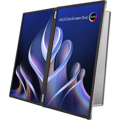 ASUS ZenScreen Duo OLED MQ149CD 360° inklapbare draagbare monitor - dubbele 14”, 16:10, 1920x1200 FHD, OLED-panelen, DisplayHDR™ 400 True Black, 100% DCI-P3, Delta E <2, tweemaal USB Type-C®, mini-HDMI®, kickstand en standaard statiefgat.
