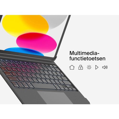 Het toetsenbord is uitgerust met speciale multimediatoetsen, waarmee je eenvoudig toegang hebt tot essentiële functies zoals volume regelen, schermhelderheid aanpassen en media bedienen – zonder dat je het bedieningspaneel van je iPad hoeft te openen.