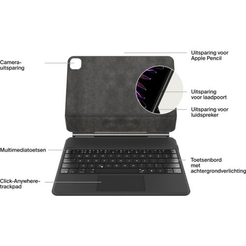 · Ondersteunt bediening met Multi-Touch-bewegingen: Gebruik je iPad zoals een laptop met functies die je gewend bent van je Mac. Scrollen, navigeren en andere Multi-Touch-bewegingen zijn moeiteloos uit te voeren via het ruime en gevoelige trackpad.