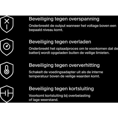 · Veiligheid: Uitgerust met meerdere beveiligingslagen, waaronder bescherming tegen overspanning, overstroom, oververhitting en kortsluiting.
