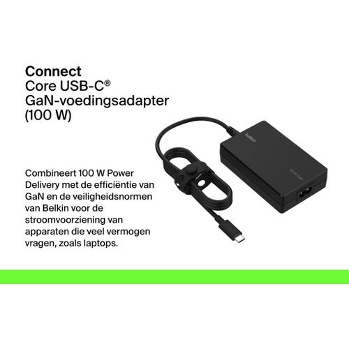 Belkin Core USB-C® GaN-voedingsadapter 100 W De Belkin Core USB-C® GaN-voedingsadapter levert betrouwbare en krachtige prestaties dankzij de nieuwste GaN (Gallium Nitride) technologie. Dit maakt de adapter efficiënter en compacter dan traditionele opladers. Belangrijkste Kenmerken · Power Delivery:...