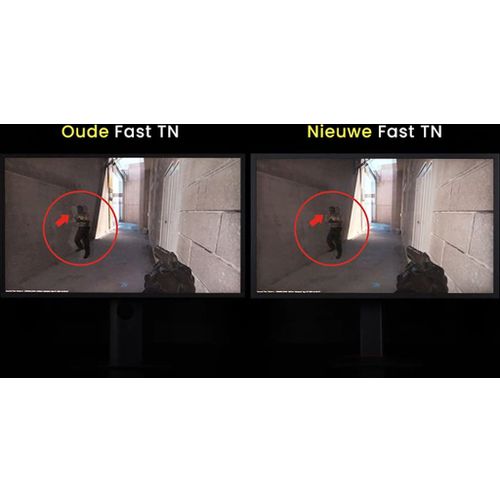 In vergelijking met IPS-paneltechnologie vervaagt het verblindende wit veel sneller, wat je het voordeel geeft dat je jouw vijand eerder ziet.