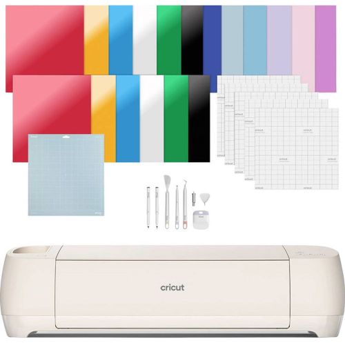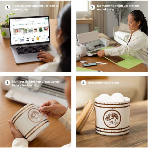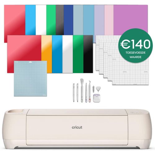 Maak je eigen vinylstickers, T-shirts, kleurenstickers, kaarten en nog veel meer, ook in veelvoud, met de Cricut Explore™ 4. Deze snijmachine is snel en nauwkeurig en snijdt tot 2x zo snel als het vorige model. Er staan gebruiksvriendelijke installatie-instructies online. De bundel bevat de snijmachine en populaire materialen en tools, zodat je meteen iets moois kunt maken. Geen ontwerpervaring vereist. Werkt met de gratis Design Space™ -app.