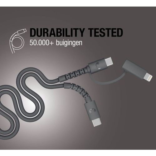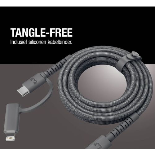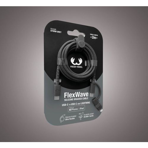 Fresh 'n Rebel Flexwave Silicone Braided Combo Kabel Usb-c Naar + Lightning 2m Usb-kabel 70 Cm Storm Grey