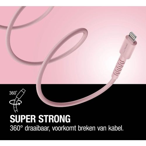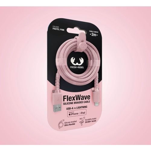Fresh 'n Rebel Flexwave Silicone Braided Usb-a Naar Lightning Usb-kabel 2 M Pastel Pink