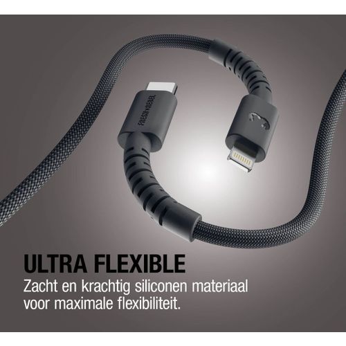 De FlexWave USB-C naar Lightning kabel combineert topkwaliteit met een stijlvol design. Dankzij het zachte siliconen materiaal, de sterke gevlochten nylon buitenlaag en de 360° strain relief blijft de kabel soepel, raakt hij niet in de knoop en is hij bestand tegen intensief gebruik. Met ondersteuning tot 30W power delivery laad je je iPhone of iPad razendsnel op.
