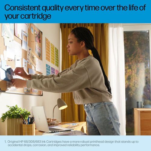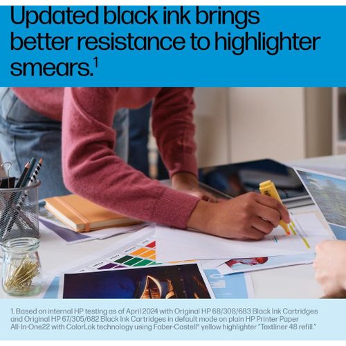Laat de printkwaliteit en betrouwbaarheid niet aan het toeval over. Originele HP inktcartridges leveren langdurige, hoogwaardige prints die bestand zijn tegen vervaging en vlekken van markeerstiften. [6,7,8]