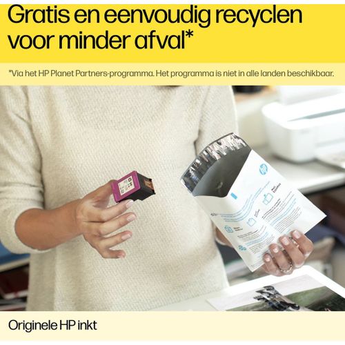 Bij deze originele HP inktcartridges [2] met vernieuwde technologie [1] staan kwaliteit en betrouwbaarheid centraal. Ontworpen met ten minste 65% gerecycled plastic [3] Lege cartridges zijn eenvoudig kosteloos te recyclen via het HP Planet Partners-programma. [4]