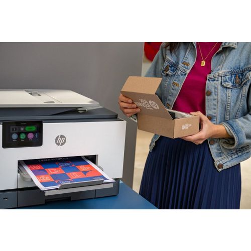 Dit is de HP OfficeJet Pro 9130e All-in-One Printer. Maak kennis met de professionele kleureninkjetprinter voor je groeiende bedrijf van de grootste printerfabrikant ter wereld, gekoppeld aan de handigste printapp. Deel gemakkelijk via de cloud en print via meerdere apparaten met extra prestatiefuncties.