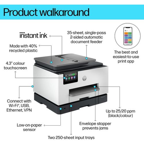 Deze printer is geschikt voor HP Instant Ink. Deze inktservice maakt het printen voor jou nog makkelijker en goedkoper. Zit nooit meer zonder inkt. En profiteer van handige vervanging van inktcartridges inclusief bezorging. Kosteloos aanpassen of opzeggen. Bekijk alle voorwaarden op hp.com/instantink.com