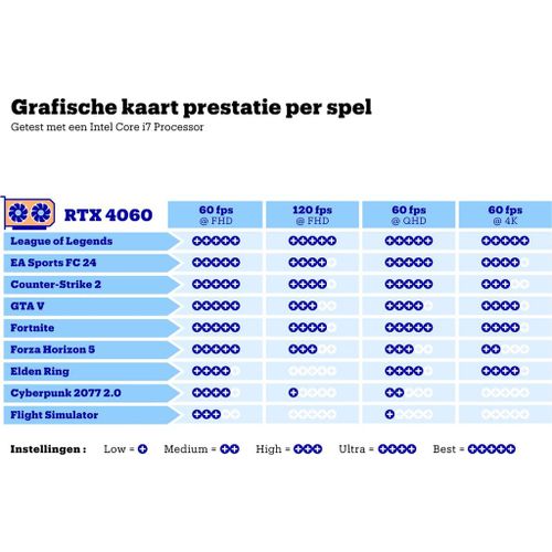 NVIDIA GeForce RTX 4060 beschik jij over een stevige 8 GB aan snel GDDR6 videogeheugen, ruim 3840 vernieuwde CUDA cores en de mogelijkheid om gebruik te maken van de 2e generatie Ray Tracing en DLSS functionaliteit. Game in de hoogst mogelijke instelling in een resolutie van tot wel 4k. Hierdoor zijn jouw game werelden meeslepend.