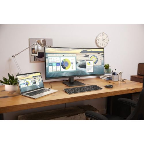 Ga helemaal op in de Curve Als het om de P34hc WQHD Curved monitor gaat, is groter echt wel beter. Aangezien het indrukwekkende, ultrabrede scherm u gefocust houdt, hebt u minder kans om afgeleid te raken en bent u tot 33% productiever [1] in vergelijking met een kleiner scherm. Beeldscherm Beeldsc...