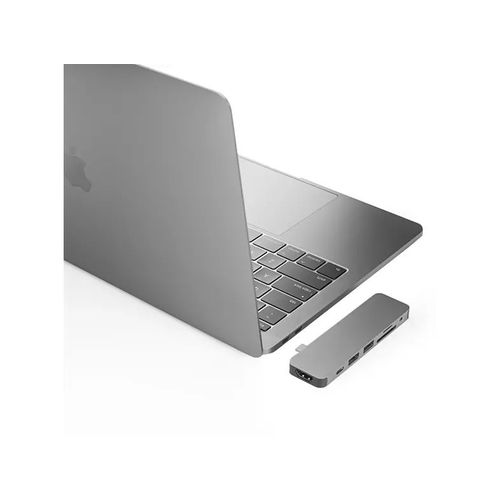Met de HyperDrive SOLO 7-in-1 USB-C-hub maak je van je USB-C-poort in een klap zeven verschillende poorten en ingangen. Je krijgt er een HDMI- en USB-C-poort bij, 2 USB 3.1-poorten, een microSD- en SD-kaartlezer en een handige audio-aansluiting. De HDMI-aansluiting ondersteunt tot 4K-videoresolutie. De hub is geschikt voor gebruik met MacBooks, pc's en andere devices met een USB-C-aansluiting. De vormgeving van de HyperDrive SOLO is strak en modern, en past heel mooi bij de spacegrijze MacBook-uitvoeringen.