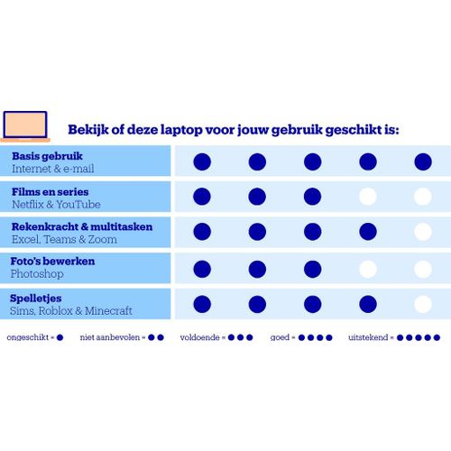Deze laptop is geschikt voor algemene studie en productiviteit, zoals het maken van presentaties in Powerpoint of verslagen uitwerken in Word. Ook kan je dankzij het IPS-scherm met goede kijkhoeken en speakers met Dolby Audio lekker genieten van je favoriete films en series.