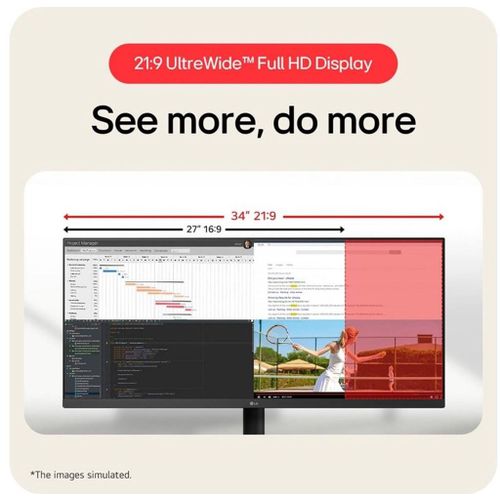 Of je nu werkt, gamet of multimedia consumeert, de LG 34U511A-B Ultrawide monitor biedt je een breed perspectief met vloeiende prestaties en levendige beelden — de perfecte combinatie voor een productieve en meeslepende ervaring.