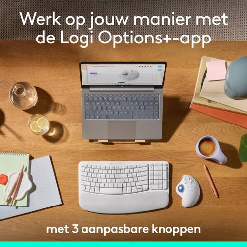 Werk in je comfortzone met de draadloze Logitech Ergo M575S-trackball Muis, ontwikkeld door Logi Ergo Lab-experts, door gebruikers getest en gecertificeerd door ergonomen voor 25% minder spierbelasting in je onderarm. Beweeg de cursor met soepele en nauwkeurige duimbediening, op een gevormd ergonomisch ontwerp dat je hand ontspannen houdt en je onderarm in een natuurlijkere houding blijft. Hij trackt ook op de meeste oppervlakken en omdat hij niet verplaatst hoeft te worden, is de Ergo M575S perfect voor krappe opstellingen en volle bureaus. Nu met stil klikken. Maak in een handomdraai verbinding via Bluetooth of de meegeleverde Logi Bolt-ontvanger en geniet van urenlang comfort met een batterijduur van 18 maanden.