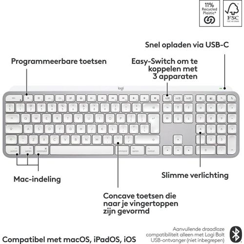 Logitech Mx Keys S Voor Mac Draadloos Toetsenbord Wit