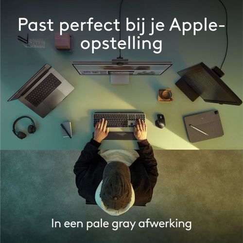 De Logitech MX Keys S for Mac is een draadloos toetsenbord dat speciaal is geoptimaliseerd voor macOS en iPadOS. Dit toetsenbord heeft een Mac-specifieke toetsindeling, bijpassende Apple-afwerkingen en een ontwerp dat in je Apple-opstelling past. Biedt een snelle, vloeiende, nauwkeurige typervaring en aanpasbare, tijdbesparende Smart Actions die je meest repetitieve taken met één toetsaanslag automatiseren. De slimme verlichting gaat branden wanneer je vingers het toetsenbord naderen en wordt automatisch helderder of vervaagt, afhankelijk van het moment van de dag. Met Logi Options+ heb je nu meer controle over de helderheid en duur van de verlichting.