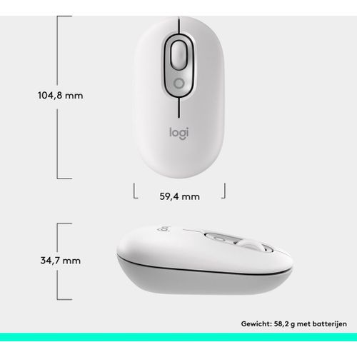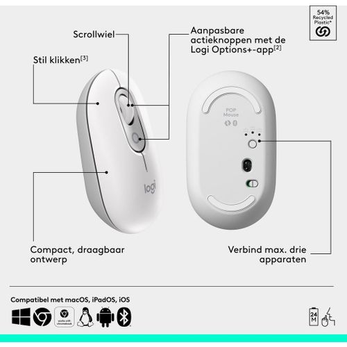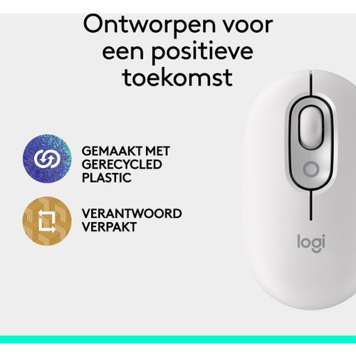 XDe Logitech Pop Mouse is een compacte en draagbare bluetooth muis met programmeerbare knoppen en stille klikken. Voeg stijl toe met de POP Mouse. Deze draadloze muis is ontworpen om anders te zijn met zijn compacte, afgeronde ontwerp en houdt alles stil met Silent Touch-technologie die 90% van het k...