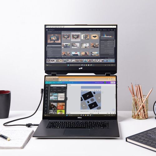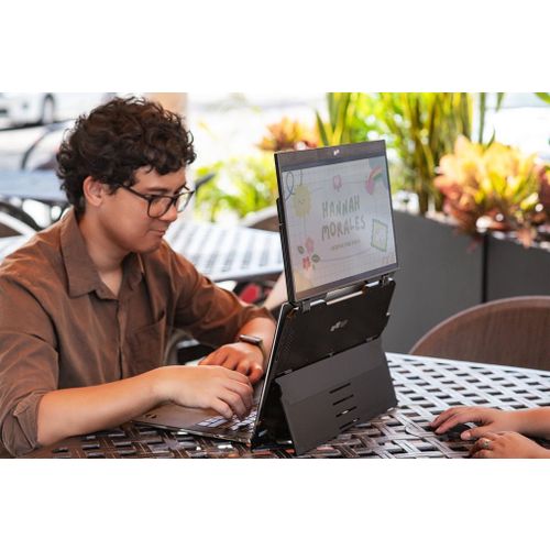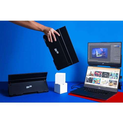 "Stap binnen in de wereld van grenzeloze productiviteit met de Mobile Pixels Duex Float - jouw betrouwbare metgezel voor onderweg! Met zijn verfijnde ontwerp en naadloze bevestigingsopties biedt Duex Float een revolutionaire dual-screen ervaring, waar je ook bent. Dankzij het kristalheldere 1080p IPS-display worden jouw visuals tot leven gebracht met levendige kleuren en scherpe details, waardoor elke taak een plezier wordt om aan te werken.