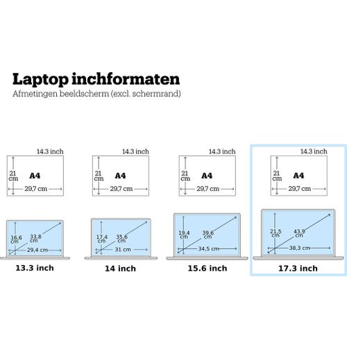17,3 inch scherm en is vooral geschikt voor thuisgebruik. Het grotere scherm maakt alles beter zichtbaar en overzichtelijk dan bij een 15.6 inch display. Een