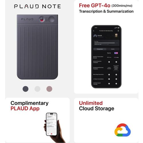 De PLAUD NOTE is ’s werelds eerste spraakrecorder die gebruikmaakt van de kracht van AI, ondersteund door LLM tools. Let op: voor dit product is een abonnement nodig voor alle functionaliteit. Zie onderaan deze pagina voor meer informatie. Dit ultraslanke, draagbare en stijlvolle apparaat is het ideale hulpmiddel voor professionals die hun productiviteit en creativiteit willen verhogen. Met geavanceerde transcriptie- en automatische samenvattingsfuncties is de PLAUD NOTE niet zomaar een spraakrecorder, maar een complete zakelijke assistent. Naast het apparaat krijg je gratis toegang tot LLM-AI, 10.000 minuten cloudopslag en de PLAUD APP.