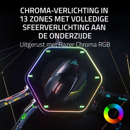 Uitgerust met Razer Chroma™ RGB. Pas elke zone aan met meer dan 16,8 miljoen kleuren en talloze lichteffecten, en ervaar nog meer diepgang door de dynamische reacties in meer dan 200 games met ondersteuning voor Chroma.