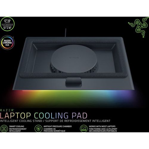 Razer Laptop Cooling Pad - Laptop Koeler - Slimme Koelstandaard - voor 14“ tot 18” laptops - Zwart Kenmerken: ADAPTIEVE SLIMME KOELING:Blijf koel als het warm wordt met de Razer Laptop Cooling Pad - een slimme standaard die de ventilatorsnelheden dynamisch regelt op basis van de temperatuur van je l...