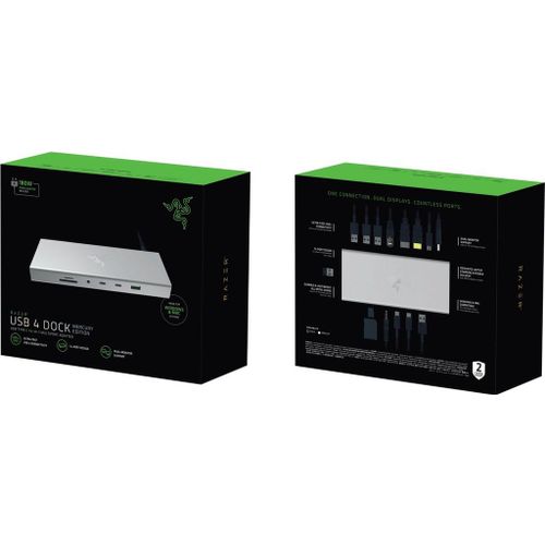 Razer USB 4 Dock - USB Hub - 14-poorts USB 4 Dock voor twee schermen - Mercury Wit Kenmerken: Eén aansluiting. Twee schermen. Talloze poorten:Verander uw werkplek in de ultieme plek voor gaming en productiviteit met de Razer USB 4 Dock. Aangedreven door ultra-snelle USB 4-connectiviteit, verenig uw...