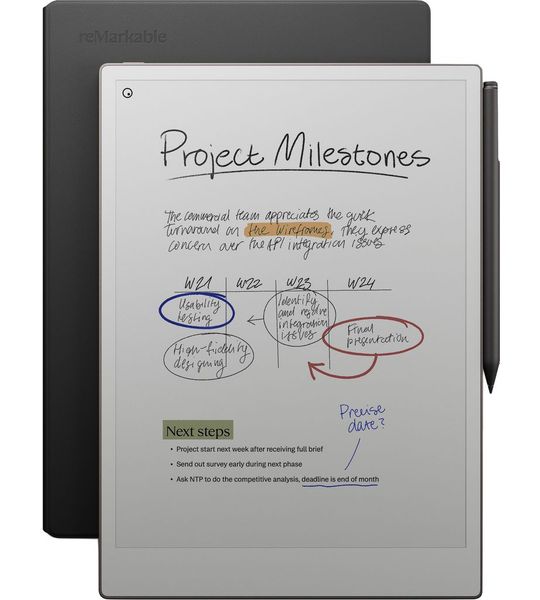 Je maakt notities en leest verschillende documenten in kleur op de reMarkable Paper Pro met Book Case Leer Zwart. De hoes beschermt je reMarkable tegen krassen en vuil. Maak aantekeningen of blader door je bestanden met de Marker Plus. De stylus klik je magnetisch vast aan de Paper Pro waardoor hij automatisch oplaadt. Lees gemakkelijk je bestanden in het donker met de verstelbare achtergrondverlichting. Je hebt bijvoorbeeld geen lamp in de buurt nodig, waardoor je altijd en overal gemakkelijk werkt. Dankzij de snellere schrijfsnelheid van de Marker Plus zie je jouw geschreven notities snel op het scherm. Met 64 GB geheugen sla je meer bestanden op dan de reMarkable 2. Je maakt mappen en houdt hierdoor je bestanden en notities georganiseerd. De reMarkable Paper Pro is licht, waardoor je 'm gemakkelijk overal mee naartoe neemt. Je vervangt de punt van je Marker Pro met de meegeleverde Marker Tips.