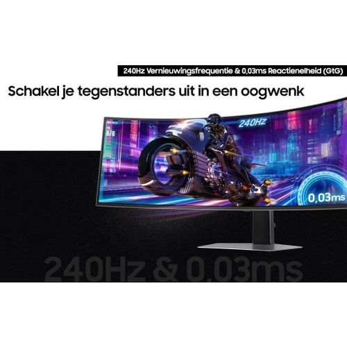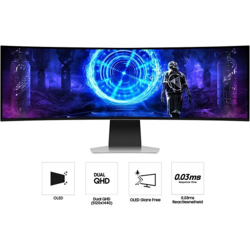 De Samsung Odyssey OLED G9 G95SD Smart Gaming Monitor is een geavanceerde gaming monitor die jou game-ervaring aanzienlijk verbetert. Met OLED-technologie biedt deze monitor een breder kleurenspectrum en levendige beelden. De Dual QHD-resolutie van 5120 x 1440 en een verversingssnelheid van 240Hz zorgen voor haarscherpe details en vloeiende beelden. De reactietijd van 0,03 ms (GtG) levert bijna onmiddellijke reacties, terwijl AMD FreeSync™ Premium Pro schermvertraging en beeldscheuren vermindert. Het gebogen ontwerp met een 1800R kromming zorgt voor een meeslepende kijkervaring, en de Glare Free-technologie vermindert schittering van externe lichtbronnen voor een perfecte kleurweergave.
