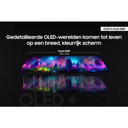 OLED-technologie biedt een breder kleurenspectrum en een levendig beeld voor een meeslepende game-ervaring. Je content komt tot leven op het Dual QHD (5120 x 1440) resolutie-scherm, met een ongekende helderheid en precisie.