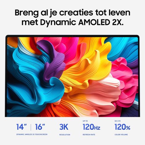 Zo meeslepend, je moet het zien om het te geloven. Het display van 14 of 16 inch brengt jouw ideeën tot leven in een hoge resolutie, met levendige kleuren en soepele bewegingen. Ook profiteer je van minder blauw licht voor optimaal oogcomfort.