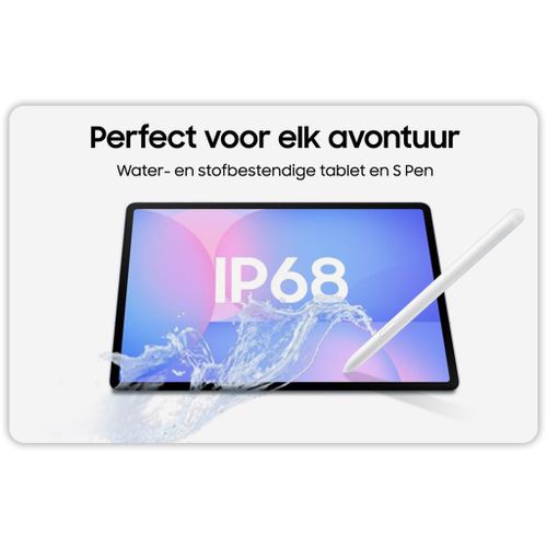 Ga zonder zorgen op pad: de Galaxy Tab S10 FE en S Pen zijn IP68-gecertificeerd, wat betekent dat ze stof- en waterbestendig zijn. Perfect voor creatieve geesten en professionals die overal willen werken, ongeacht de omstandigheden.