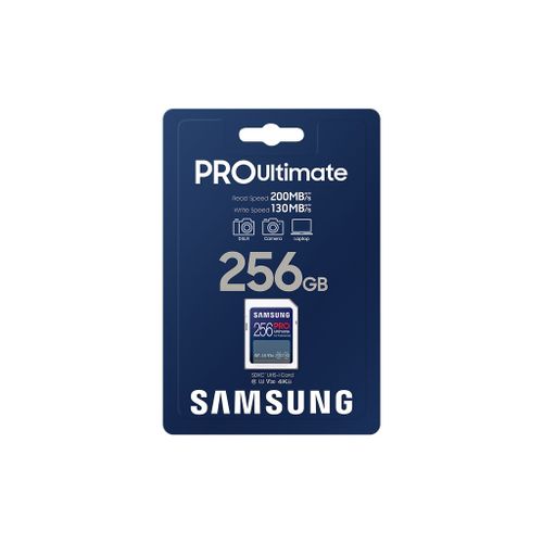 Samsung SD Pro Ultimate 256GB Geoptimaliseerd voor creativiteitOptimaliseer je creatieve workflow met razendsnelle prestaties. De Samsung PRO Ultimate UHS-I SD-kaart biedt uitzonderlijke stabiliteit, krachtige efficiëntie en betrouwbaarheid en voldoet aan de wensen van zelfs de meest veeleisende pr...