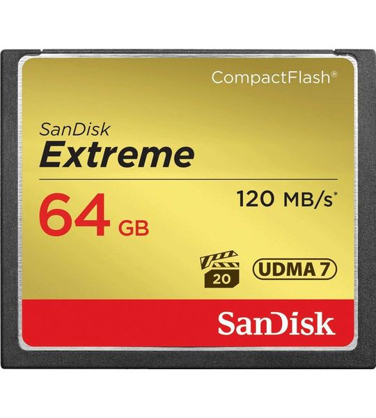 De SanDisk CF Extreme 64GB 120Mb/s is een geheugenkaart voor professionele camera's. Dankzij de hoge schrijfsnelheid gebruik je de kaart ook voor het schieten van 4K video. De kaart beschikt over een opslagcapaciteit van 64 GB, waardoor je enkele uren aan een stuk filmt.