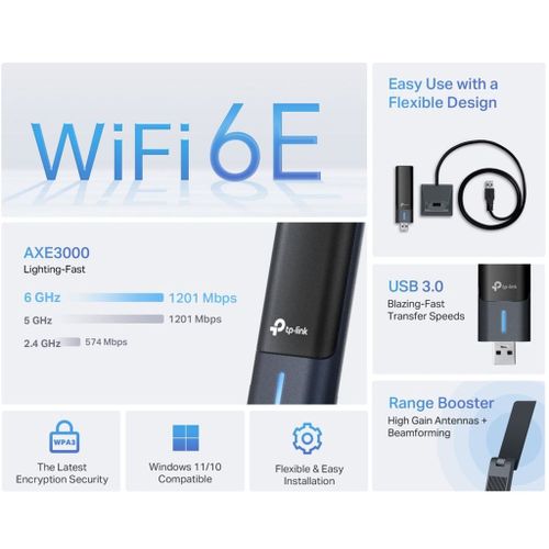 TP-Link Archer Txe70uh Axe3000 Tri-band Wi-fi 6e Usb Adapter Wifi-adapter